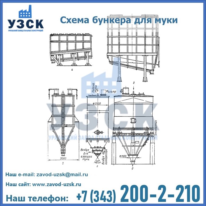 Завод «УЗСК» в Щучинске осуществляет проектирование, производство и продажу бункеров для муки. Всю информацию, касающуюся производства, реализации и установки емкостного оборудования можно узнать на нашем сайте или по телефонам, указанным в разделе «КОНТАКТЫ».