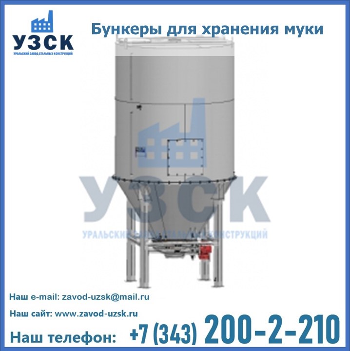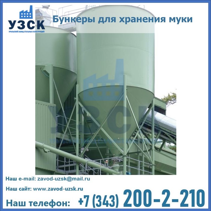 Завод «УЗСК» в Щучинске проектирует, производит и поставляет целевое оборудование, в том числе, бункеры для хранения муки и прочих сыпучих материалов.
