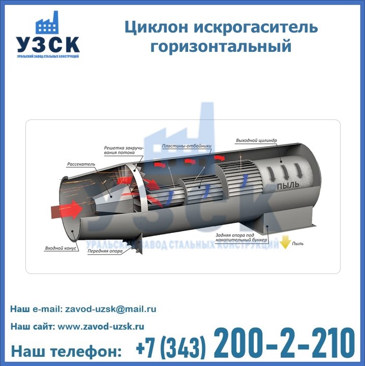 Горизонтальные циклоны-искрогасители ЦГ поставляются в Щучинске в сборке или же транспортными единицами для последующей сборки, если предназначены для работы с большими объемами.