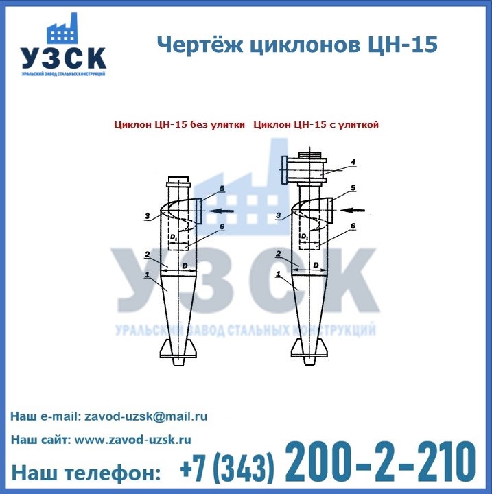 УЗСК предлагает циклоны ЦН-15 и другие виды воздухоочистительных устройств в Щучинске. Для изготовления нашей продукции используется нержавеющая сталь (3-4 мм, по запросу толщина может быть увеличена), но при необходимости толщина изделия увеличивается, в случае наличия таких требований.