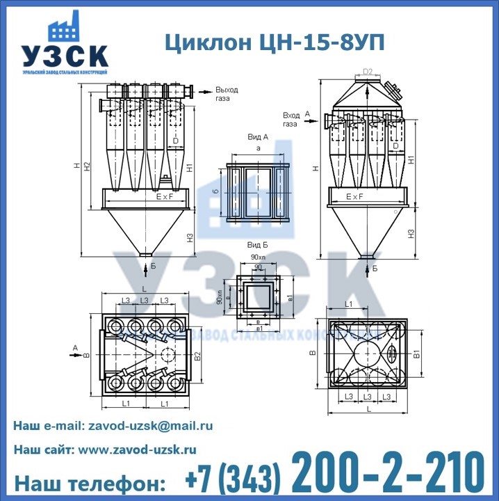 Завод «УЗСК» в Щучинске предлагает большой выбор циклонов ЦН-15-500×8УП и прочих устройств, полностью укомплектованных и готовых к эксплуатации. Мы гарантируем соответствие оборудования всем требованиям ГОСТ и ТУ, износостойкость и высокую производительность предлагаемого оборудования. Уральский Завод Стальных Конструкций изготавливает и продает надежное, эффективное и производительное оборудование, имеющее длительную гарантию и большой эксплуатационный ресурс. Если требуется изготовить циклон нестандартных размеров, то такой вариант выполнения заказа тоже предусмотрен, так как предприятие имеет собственные производственные площади и надежных поставщиков. На все поставляемое или производимое оборудование имеются чертежи и прочая техническая документация. Заказать и купить циклоны или прочее оборудование высокого качества и по доступной цене можно через наш сайт или по указанному в разделе «Контакты» телефону.