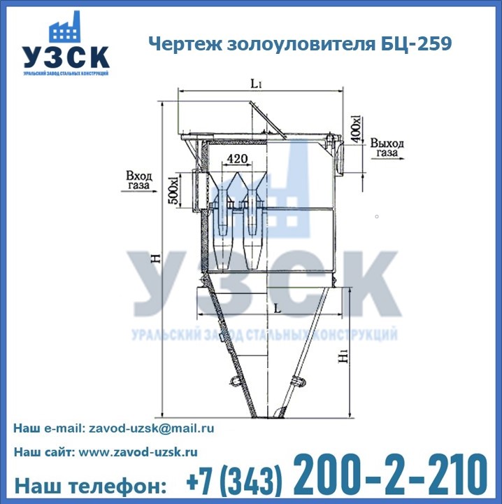 Если вы планируете купить то или иное оборудование, например, циклоны-золоуловители БЦ-259, то рекомендуем заказать данный товар на сайте УЗСК. Мы производим и реализуем продукцию высокого качества по приемлемой цене. Эксперты Уральского Завода Стальных Конструкций в Щучинске проконсультируют вас по всем вопросам, помогут сделать выбор и оформить заказ без лишних временных затрат. Мы гарантируем соответствие нашей продукции всем требованиям ГОСТ и ТУ, а также износостойкость и высокую производительность предлагаемого оборудования. Если требуется изготовить циклон нестандартных размеров, то такой вариант выполнения заказа тоже предусмотрен, так как предприятие имеет собственные производственные площади и надежных поставщиков. На все поставляемое или производимое оборудование имеются чертежи и прочая техническая документация. Заказать и купить циклоны или прочее оборудование высокого качества и по доступной цене можно через наш сайт или по указанному в разделе «Контакты» телефону.