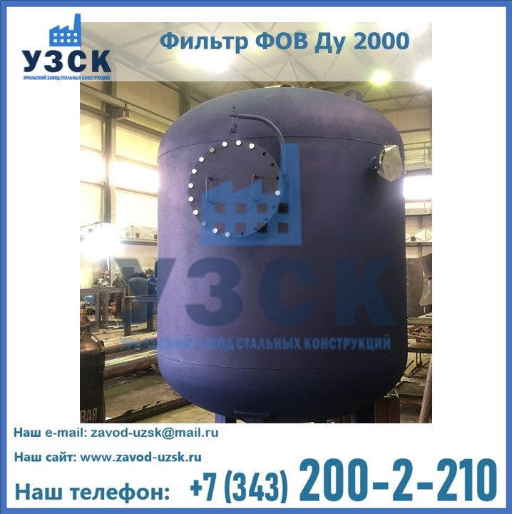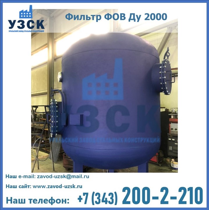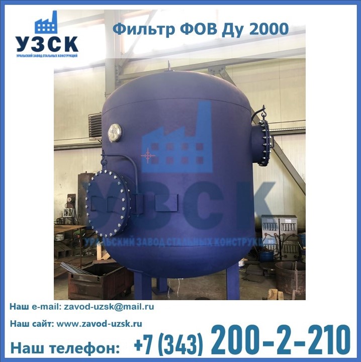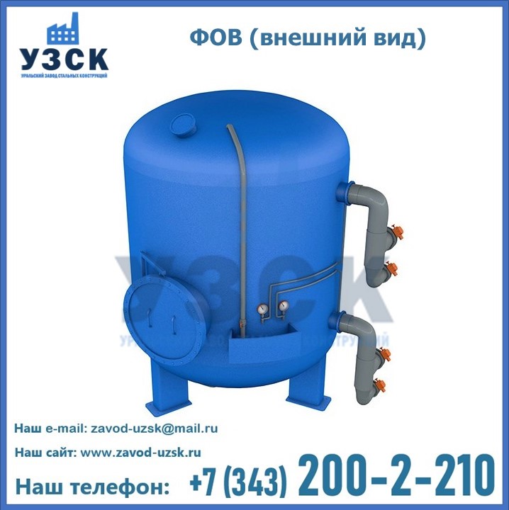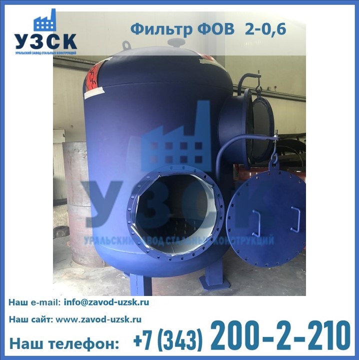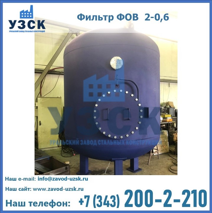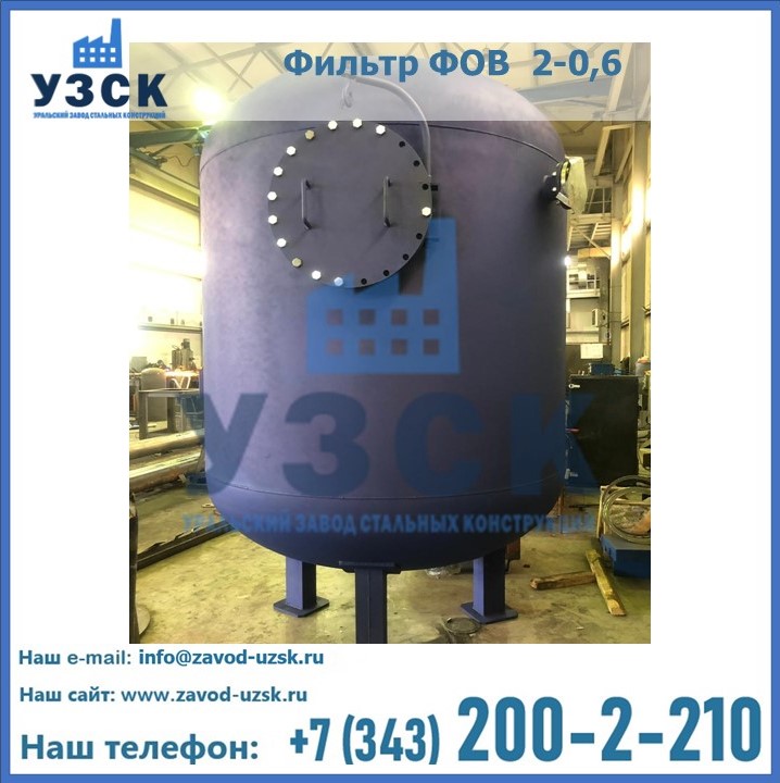 Удаление взвешенных веществ различного уровня дисперсности из рабочих жидкостей эффективно проводит фильтр осветлительный типа ФОВ (скорый или механический) — вертикально-цилиндрической формы установка, разработанная для систем водоподготовки различного класса. Оборудование представляет собой однокамерный агрегат для очистки воды рекомендованный для применения на станциях очистки стоков, в коммунальных котельных, на ТЭЦ, в промышленных отопительных системах и пр. Заказать производство ФОВ фильтров предлагает наш Уральский завод стальных конструкций в Щучинске. У нас можно купить фильтрационное оборудование различного класса и типа, в том числе фильтры ФОВ из нержавеющей стали.