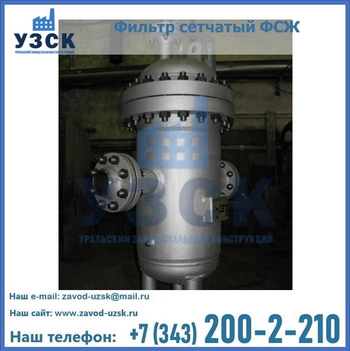 Очистку перекачиваемых жидкостей на предприятиях нефтяной, пищевой, горнорудной, фармацевтической и других отраслей промышленности эффективно выполнять с помощью жидкостного сетчатого фильтра — емкостное оборудование цилиндрической формы со съемной крышкой и элементом фильтрации внутри. Оснащенные им всасывающие линии насосных станций и установок защищены от проникновения твердых частиц в функциональные узлы гидравлической системы. Оборудование служит для перекачивания токсичных, агрессивных и иных эмульсий, суспензий, жидкостей. Купить фильтр сетчатый жидкостный ФСЖ в Щучинске с гарантией производителя предлагает «Уральский завод стальных конструкций». Мы выполняем проектирование и изготовление ФСЖ по индивидуальным требованиям (климатическая зона, транспортируемая жидкость).