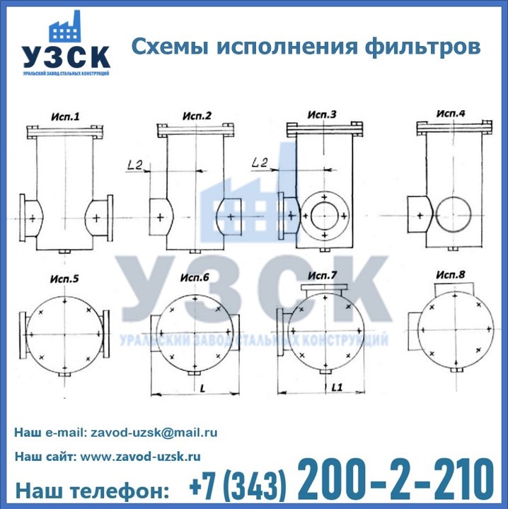 Из-за этого и разнится обозначение на ФГ и ФГУ, соответственно. Фильтры также могут быть вертикальными и горизонтальными, также может быть предусмотрена врезка сбросного трубопровода. Какой бы тип фильтра ни понадобился, завод «УЗСК» в Щучинске занимается производством любого из них.