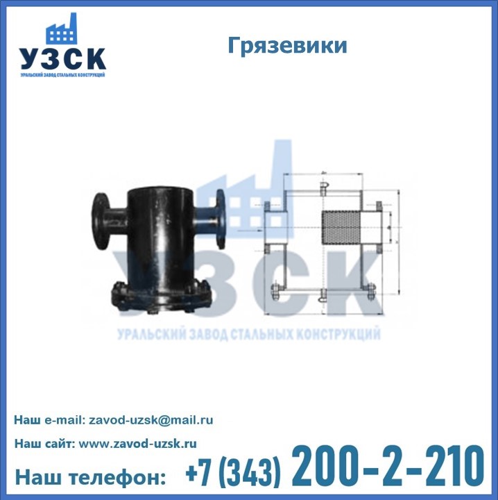 Уральский Завод Стальных Конструкций занимается производством и реализацией грязевиков в городе Щучинск, в наличии устройства горизонтального и вертикального типа, соответствующие всем требованиям и стандартам, в том числе условиям «Правил устройства и безопасной эксплуатации».