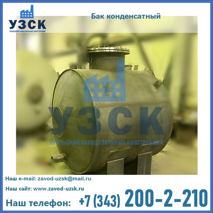 Многие заказчики стараются конденсатные баки купить по выгодной цене в компании «УЗСК» в Щучинске. Причин несколько. Производитель поставляет емкости с полным комплектом лестниц, площадок обслуживания. Бак после гидравлических испытаний покрывают специальной внутренней и наружной краской, накладывают теплоизоляцию или наваривают крепеж для навески минматов. Условия теплоизоляции согласуются с заказчиком.